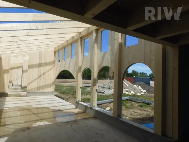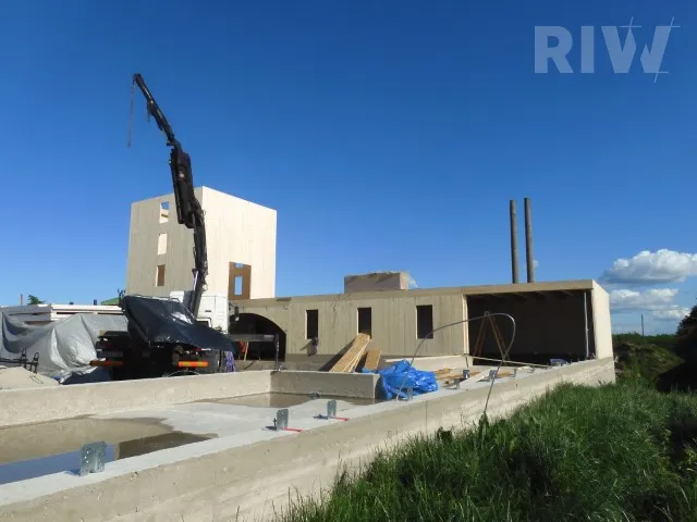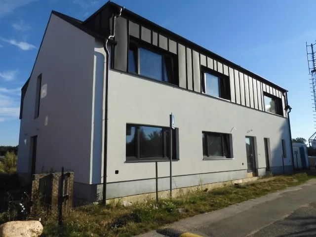 2.NP – Druhé nadzemní podlaží má soukromý charakter, jsou zde tři kanceláře a denní místnost s kuchyňkou, dále soukromá zasedací místnost a hygienické zázemí se sprchou. Ze zasedací místnosti je přístup do archivu a z denní místnosti je výstup na terasu. Stavba byla dokončena v roce 2023.