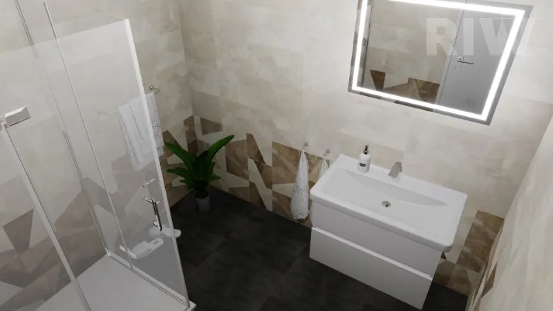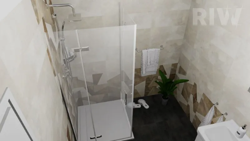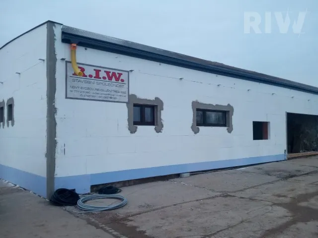 1.NP – Na zádveří navazuje vstupní hala s jedním pracovním místem. Na tento prostor navazuje kuchyňka a hlavní chodba. Ve východní straně domu najdeme hygienické zázemí a sklady. Technickou místnost jsme spojili se skladem. Západní část domu je věnována kancelářím a hlavnímu skladu. Kancelář vedle skladu s ním je propojena dveřmi pro usnadnění práce zaměstnancům. Tento hlavní sklad má velké exteriérové dveře, na které navazuje venkovní zpevněná plocha určená pro vjezd dodávky a pro vykládání a nakládání zásilek. Kanceláře jsou navrženy dle přání klienta tak, aby se do každé vešly tři stoly, které firma v současnosti využívá.