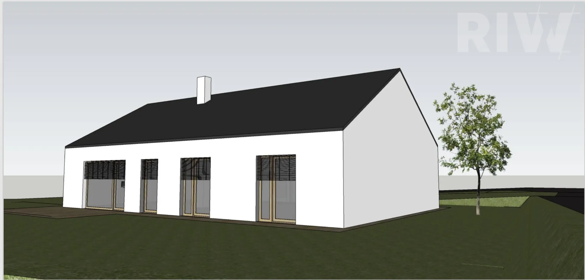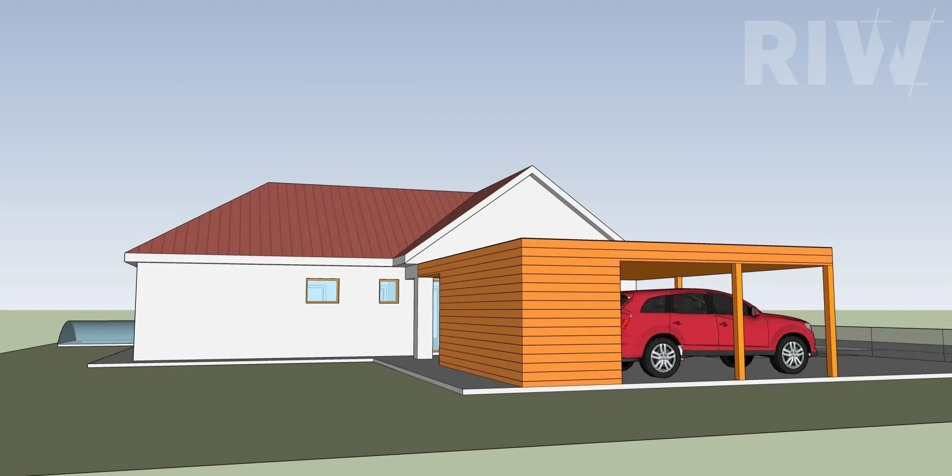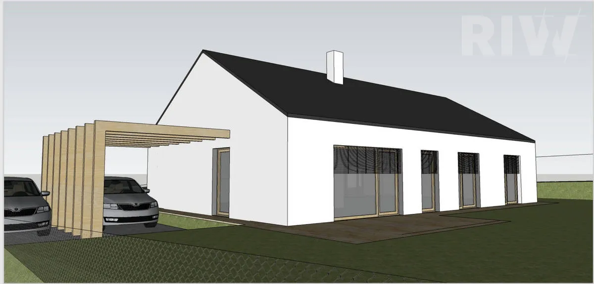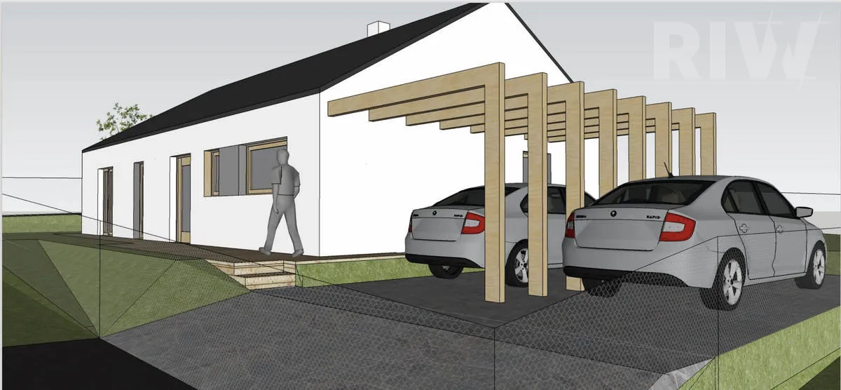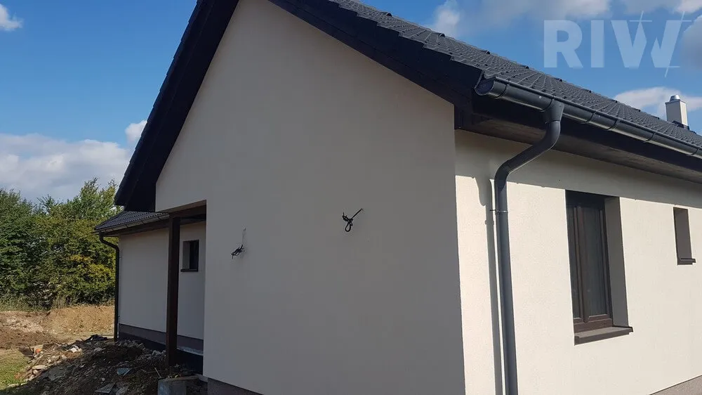 Architektonického řešení stavby zohledňuje umístění stavby v daném prostředí a architektonické začlenění do okolní zástavby. Vznikl nový rodinný dům, který je koncipován jako jednopodlažní bungalov bez obytného podkroví. Půdorys domu je obdélníkového půdorysu s max. vnějšími rozměry 8,92x14,67m. Zastřešení je řešeno sedlovou střechou bez přesahu přes obvodové stěny. Vnitřní dispozice domu: zádveří, technická místnost, WC, centrální chodba s přístupem do dvou pokojů, ložnice, koupelny a na pochozí úložnou půdu. Dále se zde nachází pracovna, která je propojená s kuchyní a jídelním koutem. Přilehlá pergola je navržena z dřevěné konstrukce, založena na základových pasech. Dům stojí na mírně svažitém pozemku.