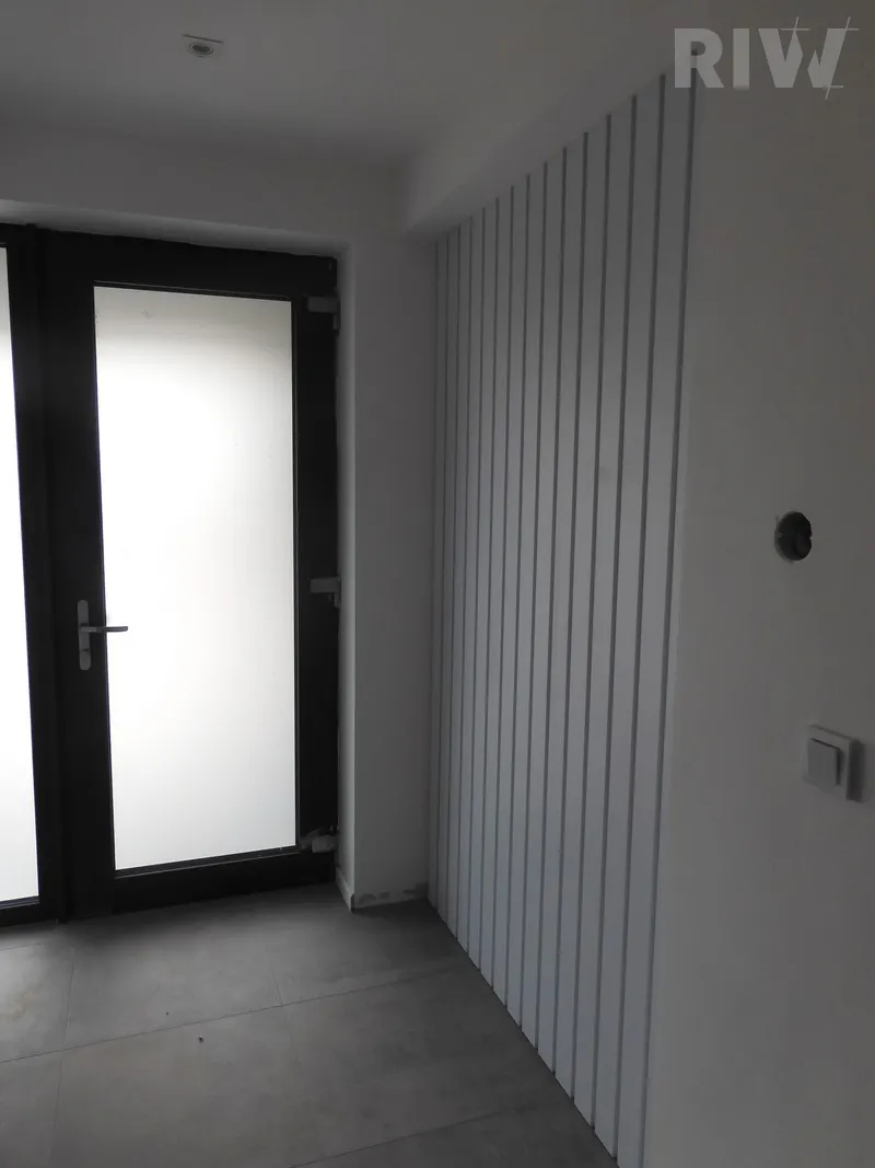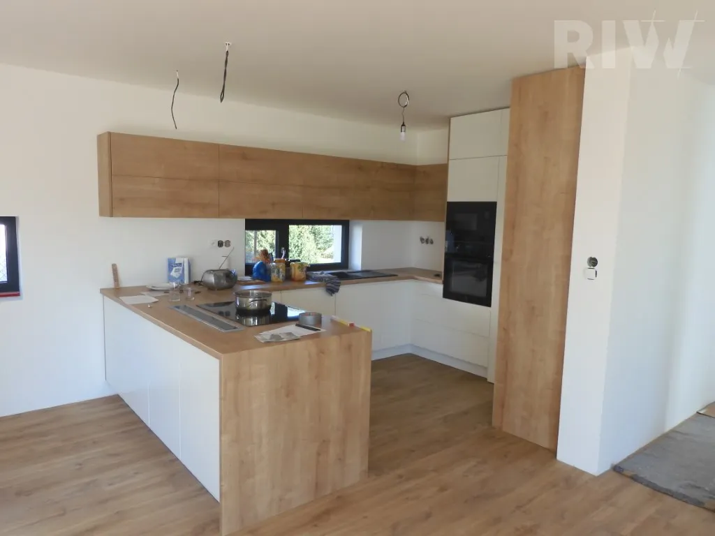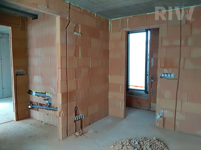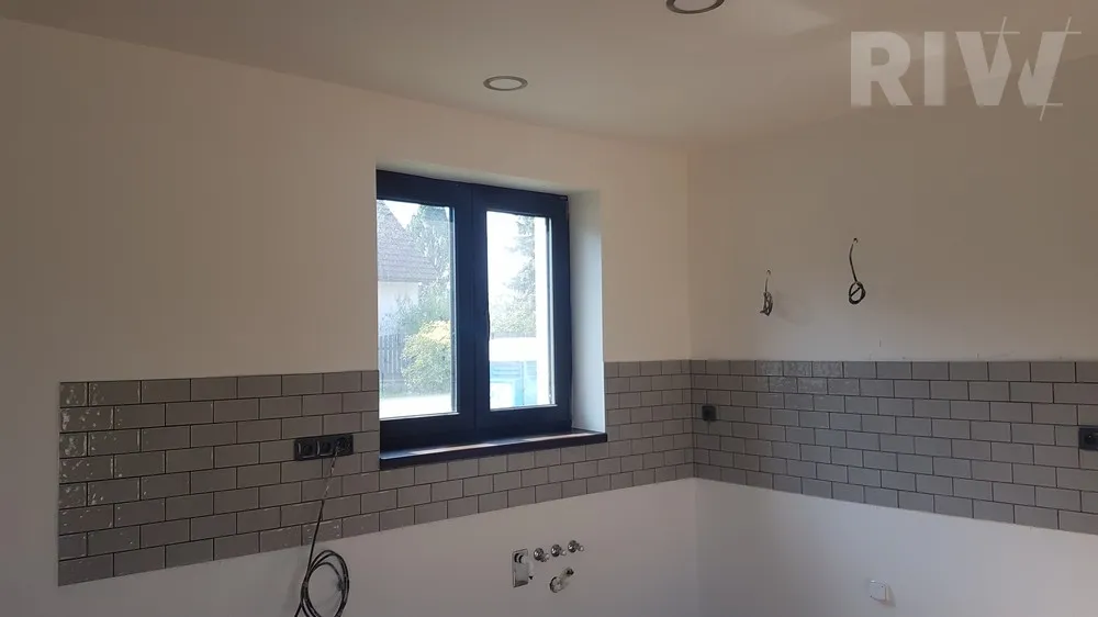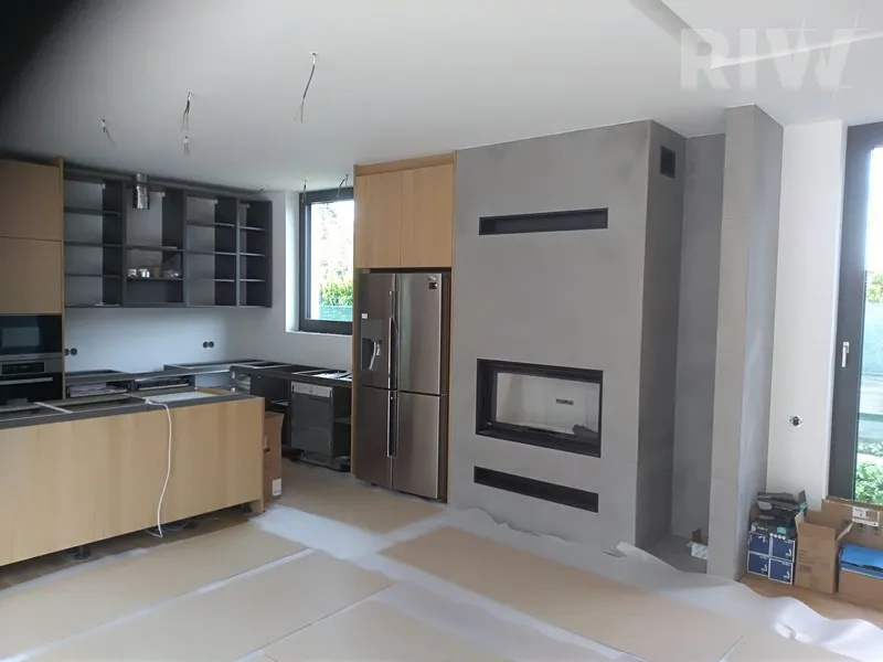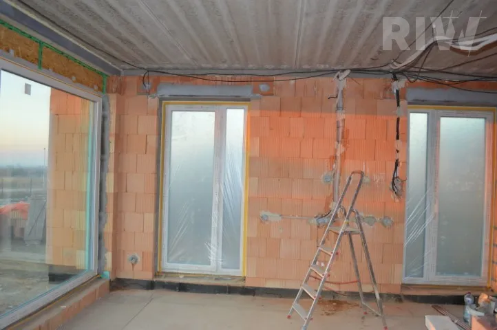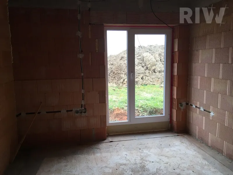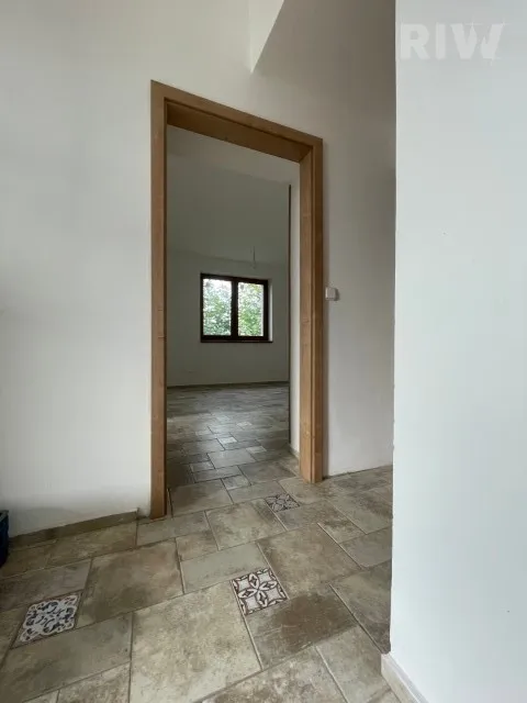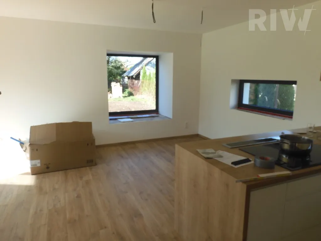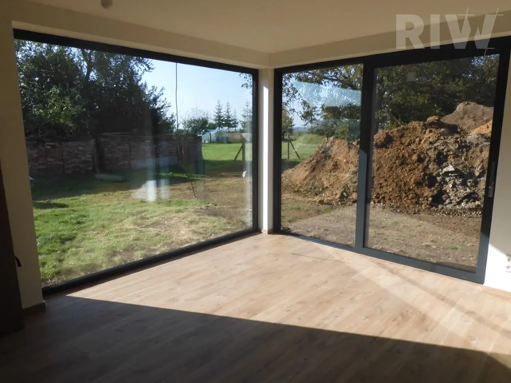 V celém domě je podlaha řešena z masivního dubu, pouze v kuchyni se nachází keramická dlažba s povrchovou imitací dřeva, což působí harmonicky. Dalším charakteristickým prvkem místnosti jsou špaletová okna a také hloubka jejich parapetu, která umocňuje výhled do zeleně.