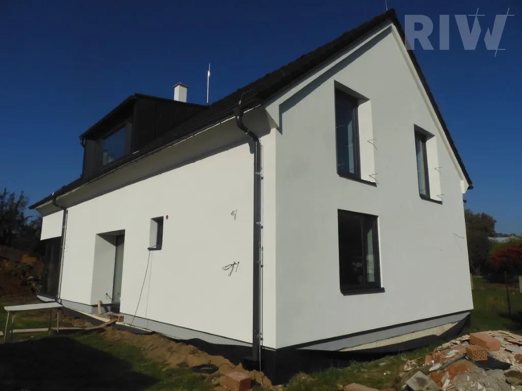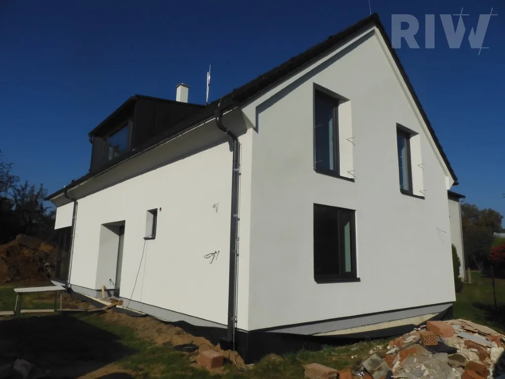 Rodinný dům je situován v klidné ulici na okraji obce. Jedná se o novostavbu přízemního rodinného domu se šikmou sedlovou střechou a nevyužívaným podkrovím, půdorysně ve tvaru „L“, obě křídla se světlým rozponem 6,0 m. Výhodou je jednoduchá, přehledná dispozice domu s pracovnou, ložnicí, pokojem, hlavní obytnou místností s jídelním koutem a kuchyní, dále zde mají majitelé domu dvě koupelny, halu a technickou místnost, samostatné WC, komoru a šatnu. V obývacím pokoji je dominantou krb a terasa, která umožňuje propojení domu a zahrady. Dům se zapojil do tradiční venkovské zástavby. Investor měl jasnou představu o tom, jak by měl jeho dům vypadat.