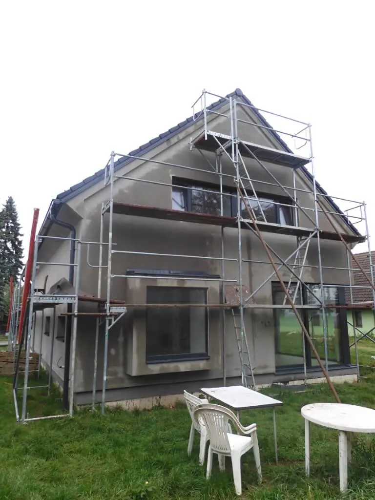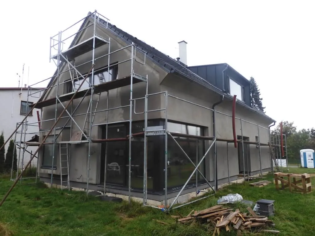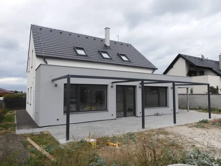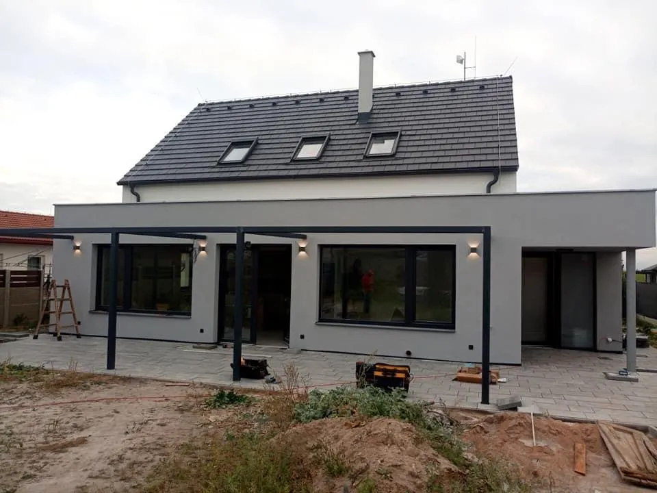 Plán obnovy zahrnoval výměnu staré střešní krytiny za moderní Bramac Tegalit a instalaci nového střešního okna s oplechováním. Následoval nový nátěr fasády, který dodal domu svěží vzhled. Práce jsme završily výměnou terasových prken a renovací schodiště vedoucího ze zahrady do domu. Schodiště nyní ladí s terasou a přispívá k celkovému čistému a sladěnému dojmu. Rekonstrukce nejen zvýšila praktičnost domu, ale dodala mu i moderní šmrnc.