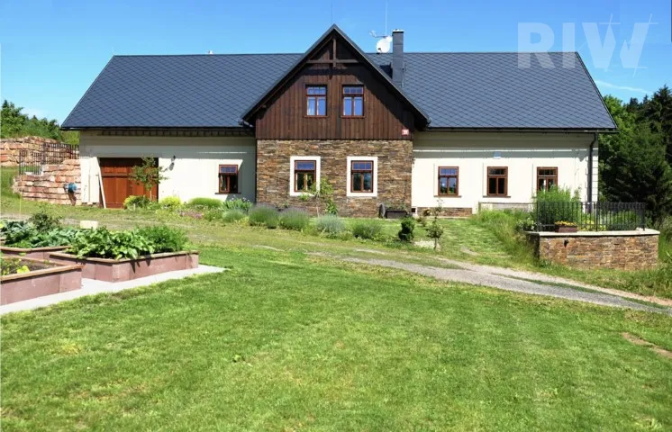 Okolí domu zůstalo neoplocené, a tak přímo navazuje na okolní louky a les.