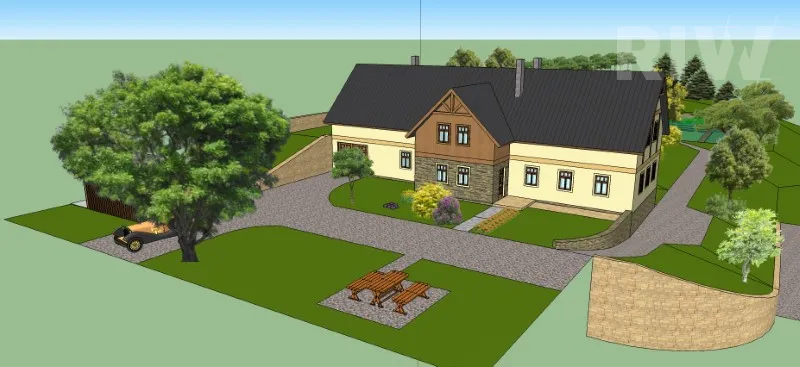 Dům je členěn tak, aby mohlo být přízemí i podkroví využíváno nezávisle na sobě.