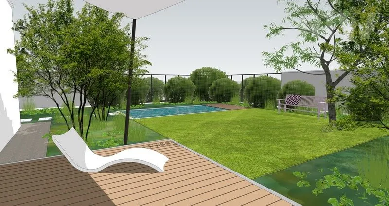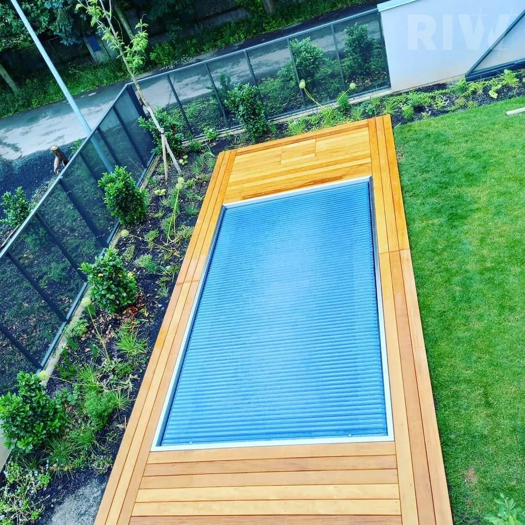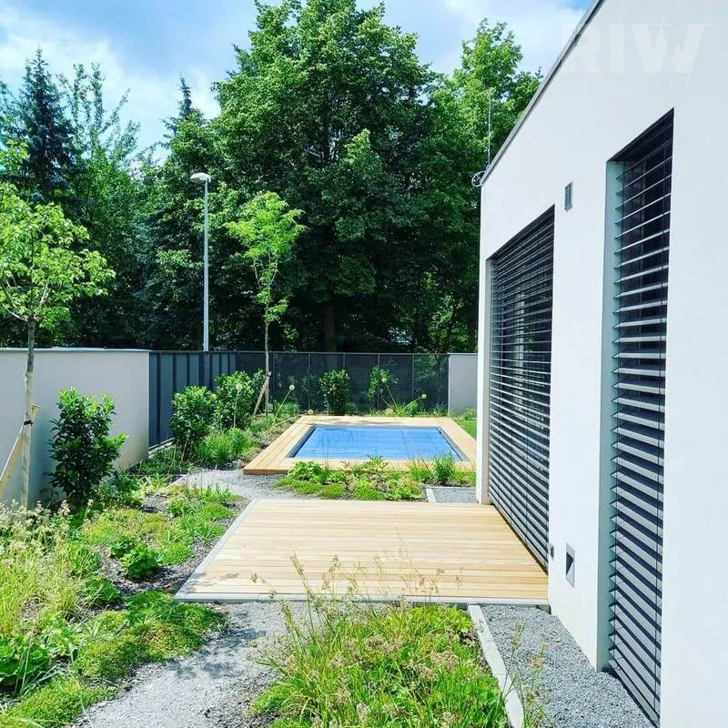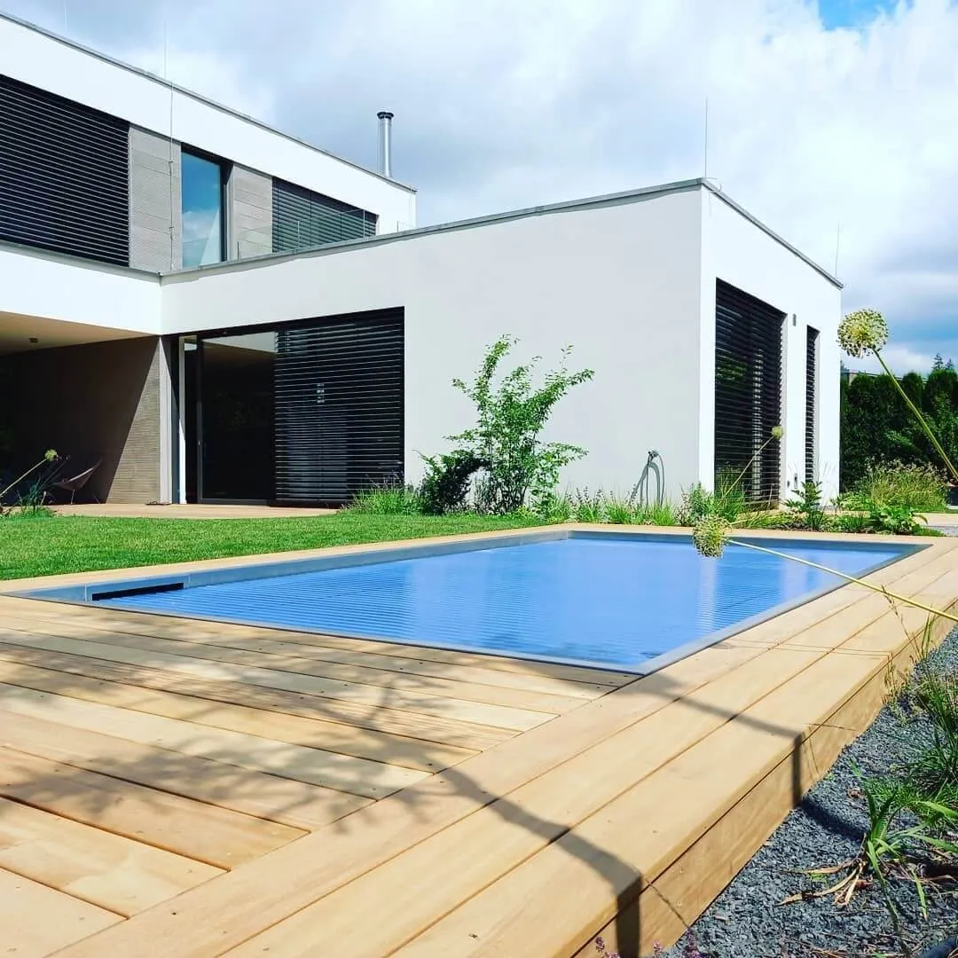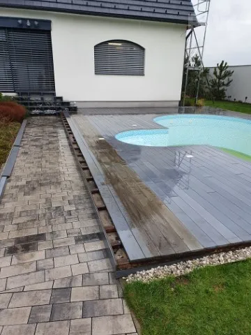Na terasách a v okolí bazénu je podlaha z dřevěného exotického dřeva – listnatý brazilský jasan s vysokou trvanlivostí. Byla to pro nás velice zajímavá realizace.