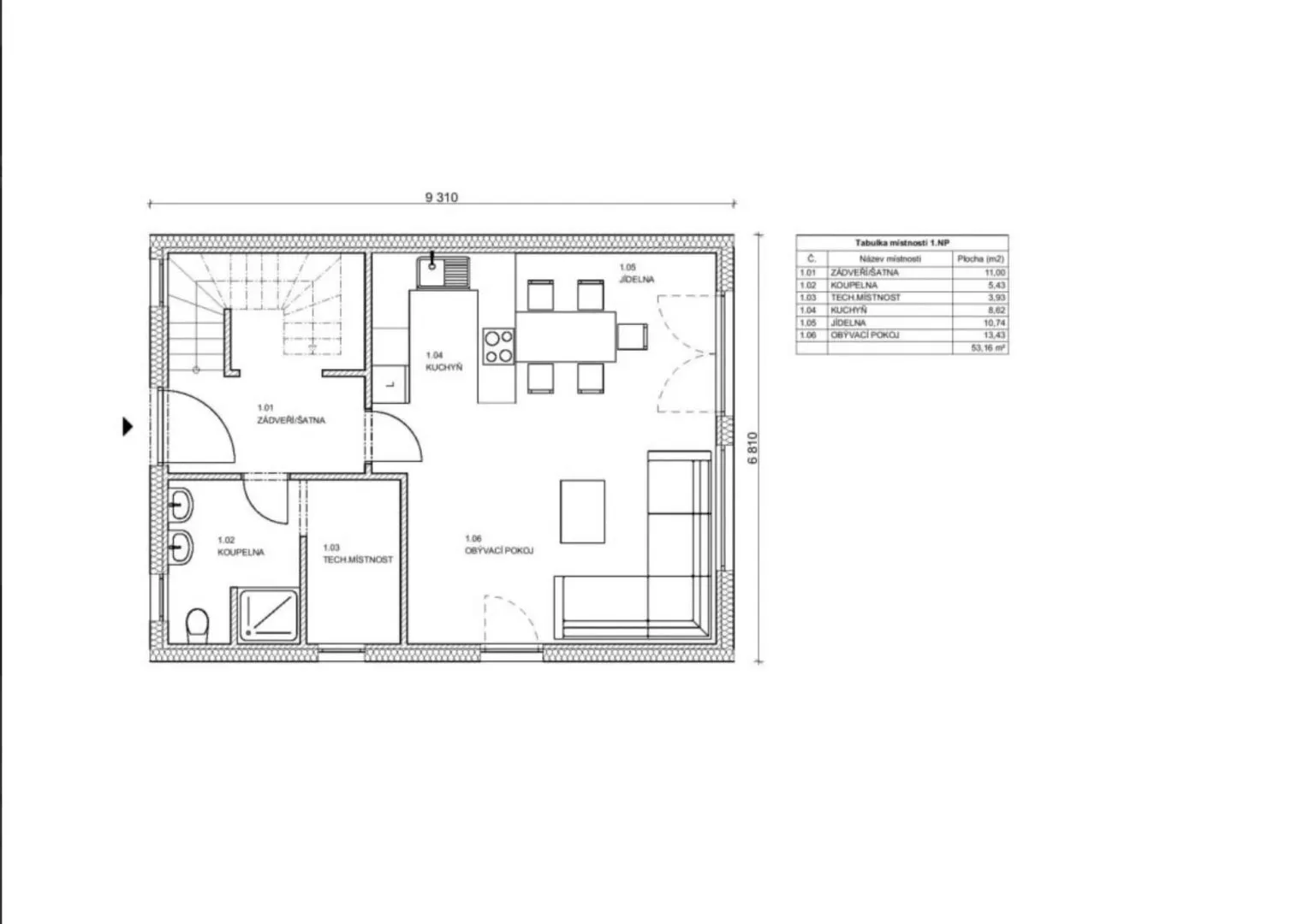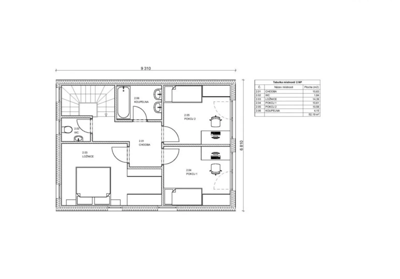 Dvoupodlažní dům se zastavěnou plochou 58,50m2, dispozičně pak jako 4kk s celkovou užitnou plochou 105,35m2. Lze realizovat jako samostatný, ale i řadový dům.
